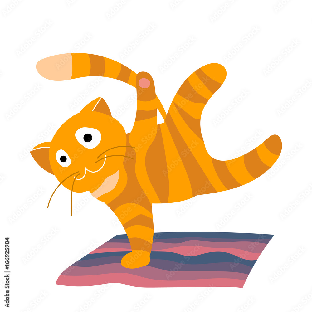 Cartoon Orange Tabby Cat Doing Workout On A Mat Isolated On White Background Stock Vector Adobe Stock