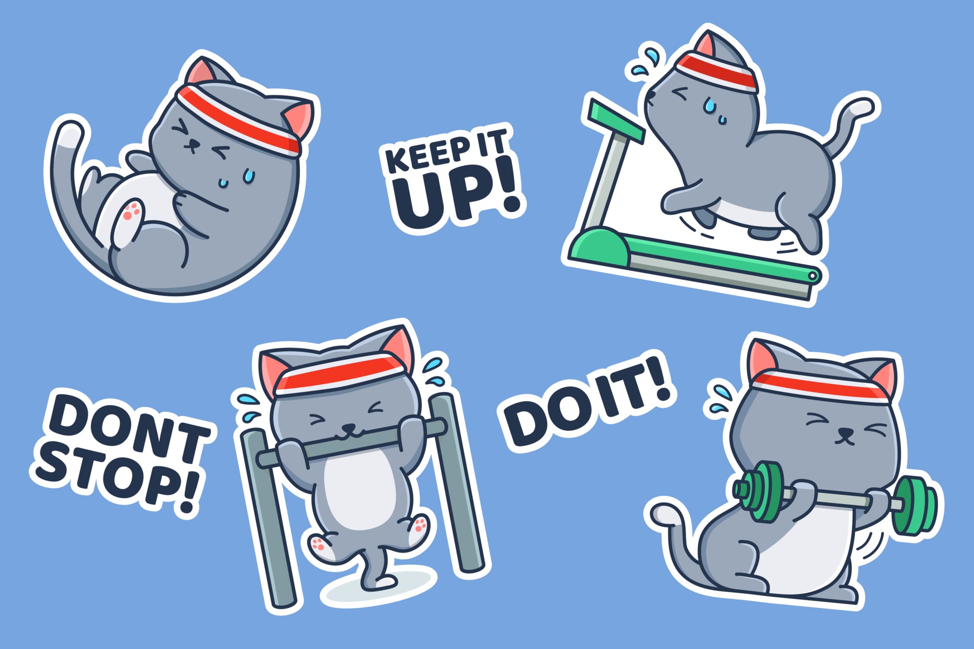 Cute Workout Cat Cartoon Sticker 3349138 Vector Art At Vecteezy