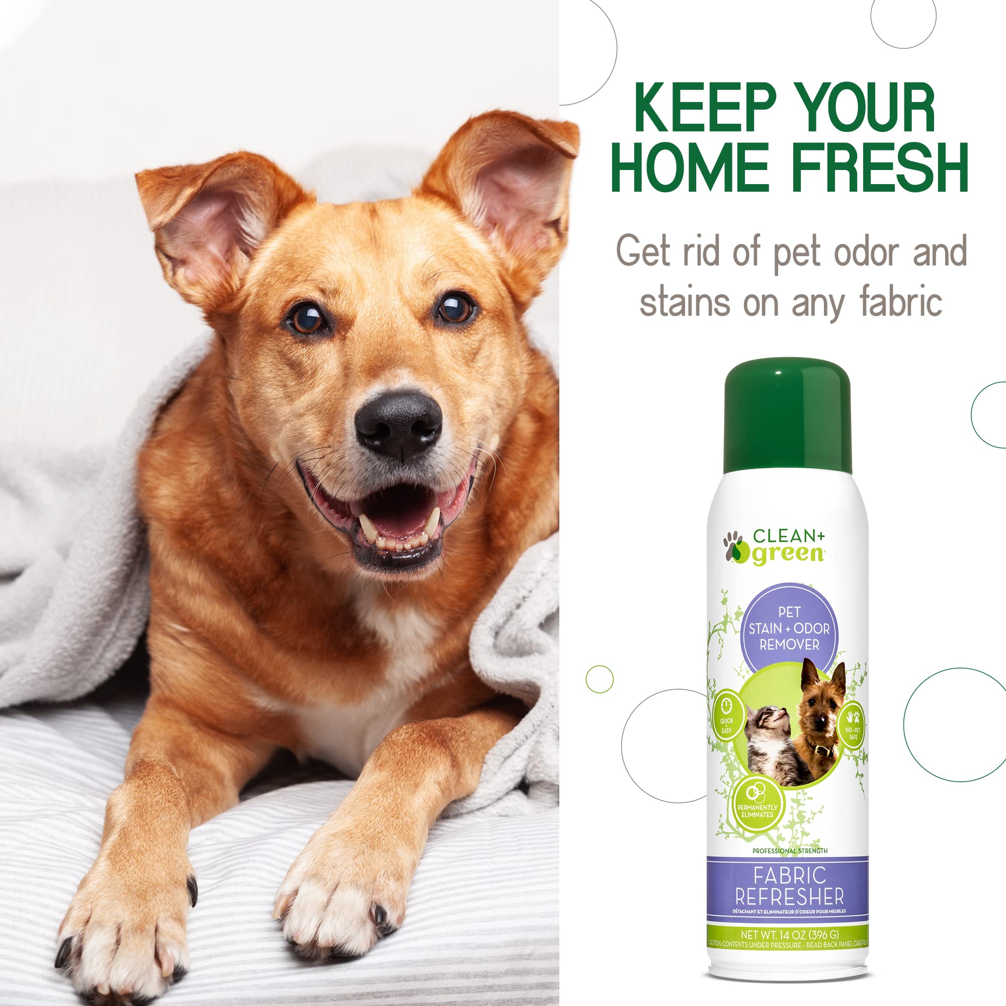Amazon Com Clean Green Fabric Refresher Spray Pet Odor Eliminator Stain Remover For Dogs Cats Upholstery Cleaner And Deodorizer Pet And Home Essentials Cleaning Supplies 14 Oz Pet Supplies